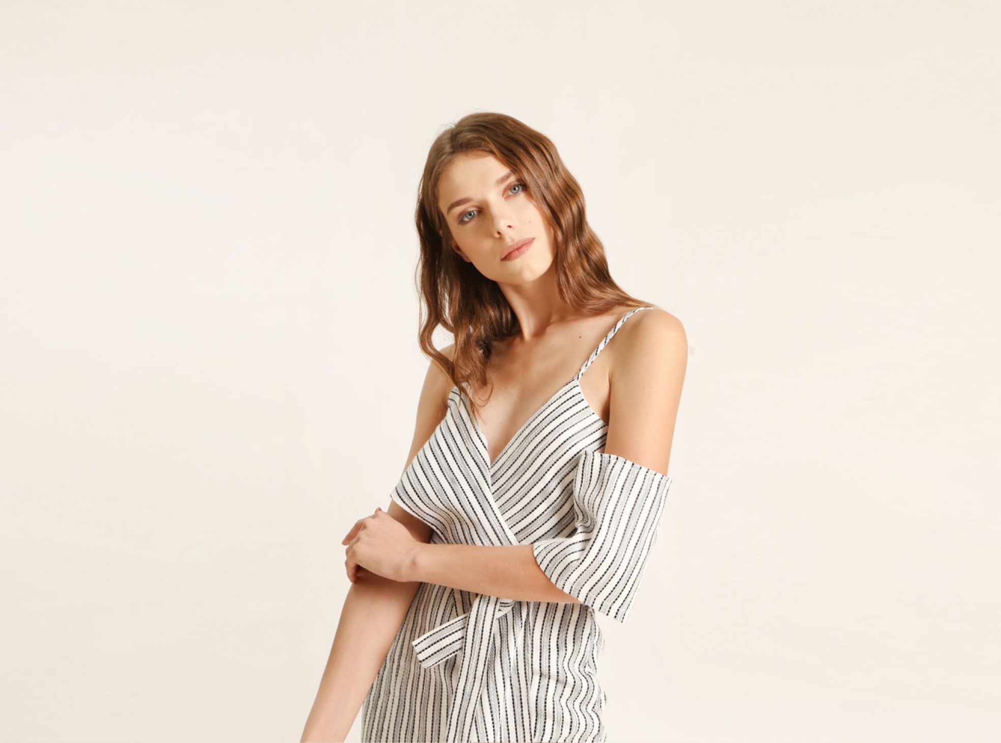 - Striped embroidered body fabric
