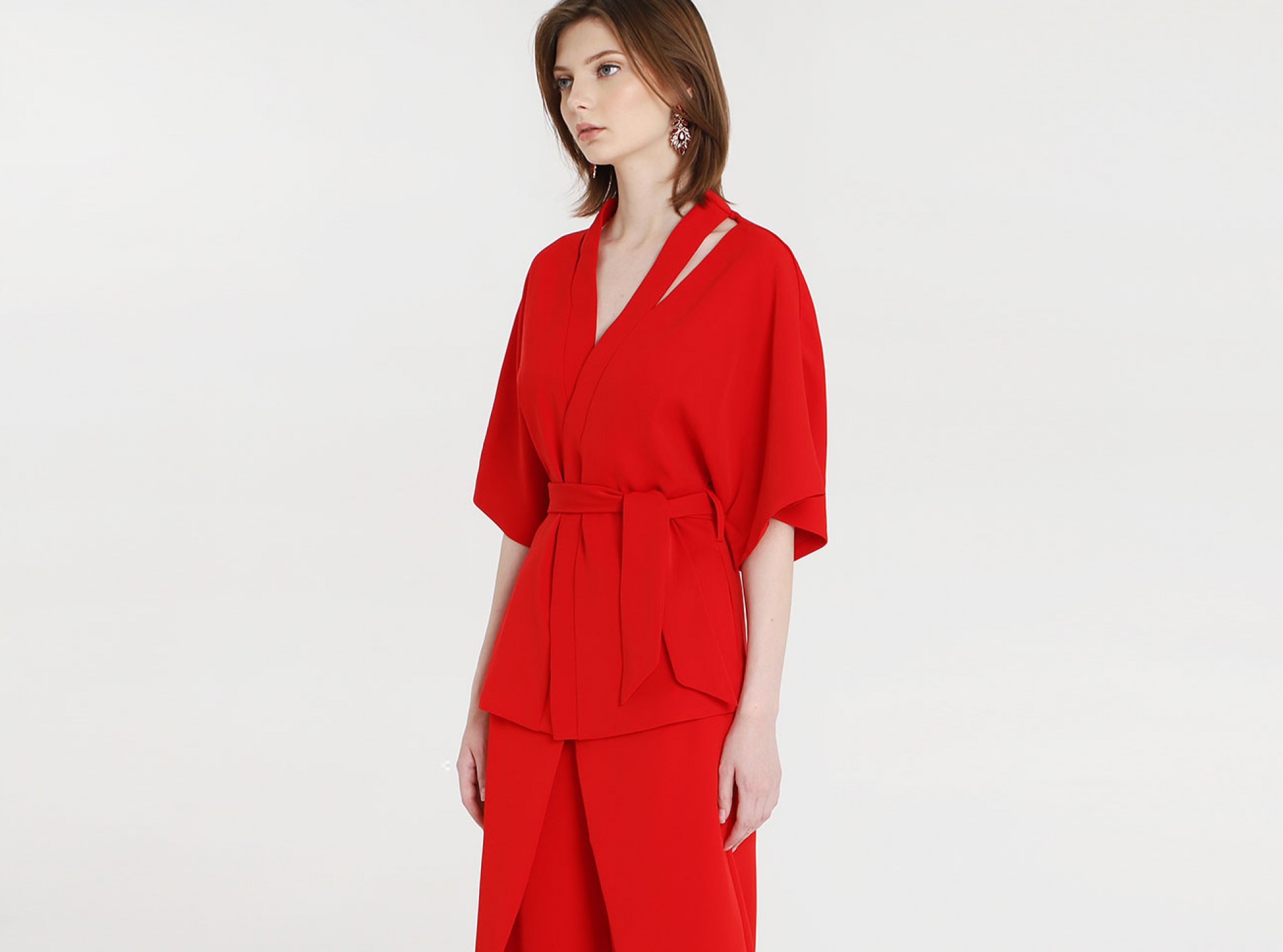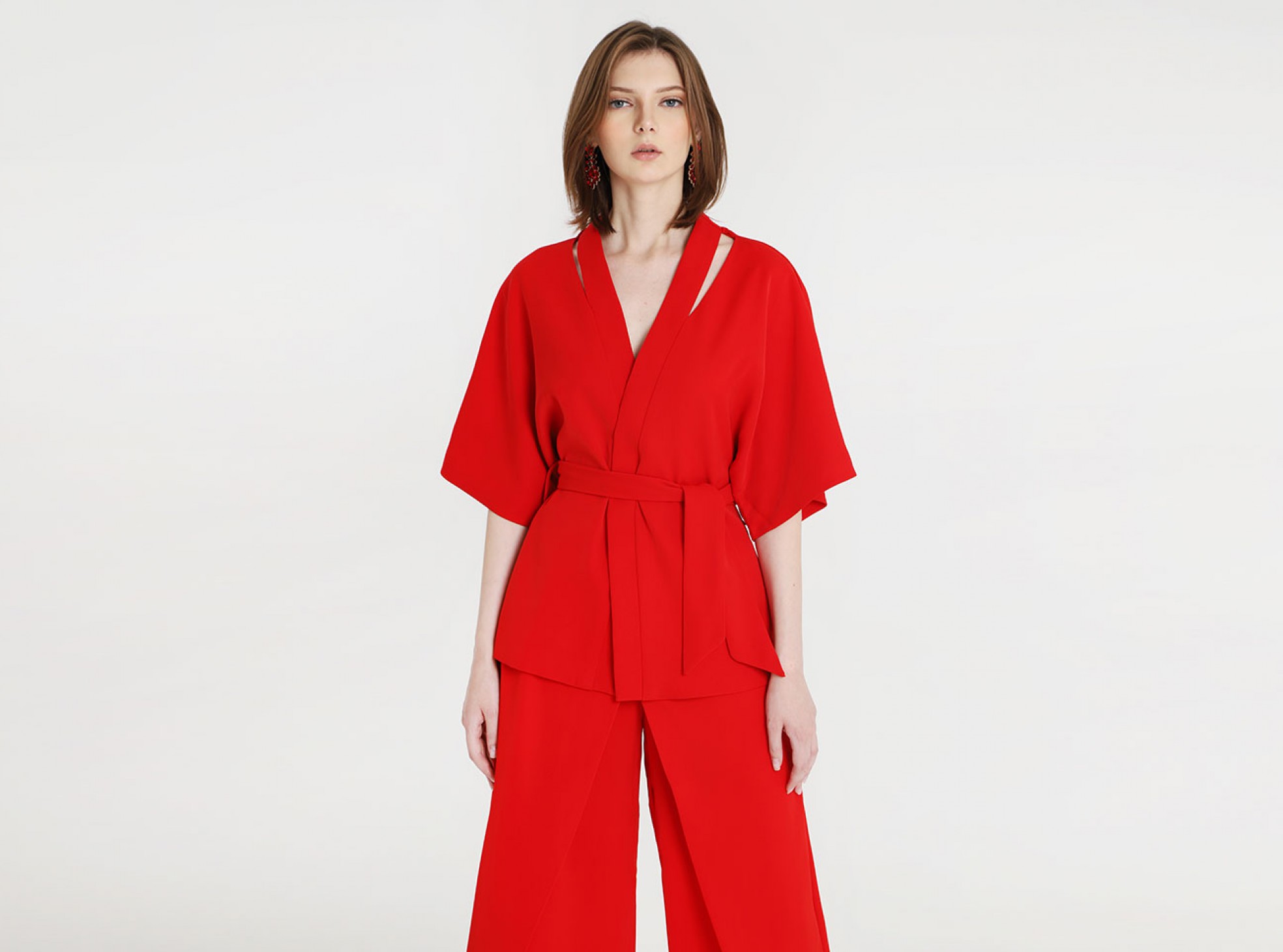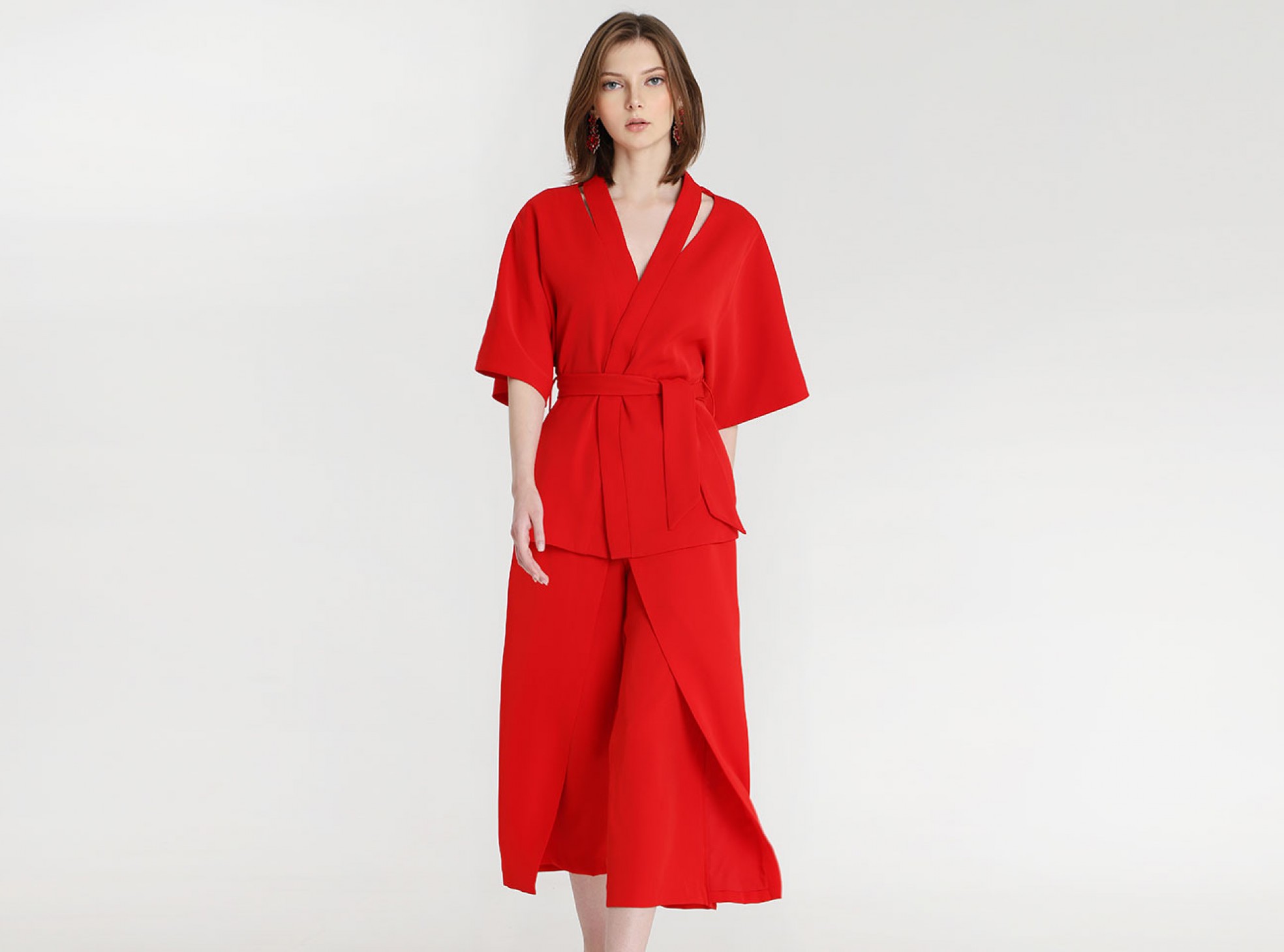 We love a summer co-ord set here at Lavish Alice, and this Cut Out Shoulder Kimono Jacket has just made it to the top of our list. In striking pillar-box red, you can team this little beauty on its own with a black culotte, or keep it coordinated with the Wrap Over Culottes in matching red. Your call.