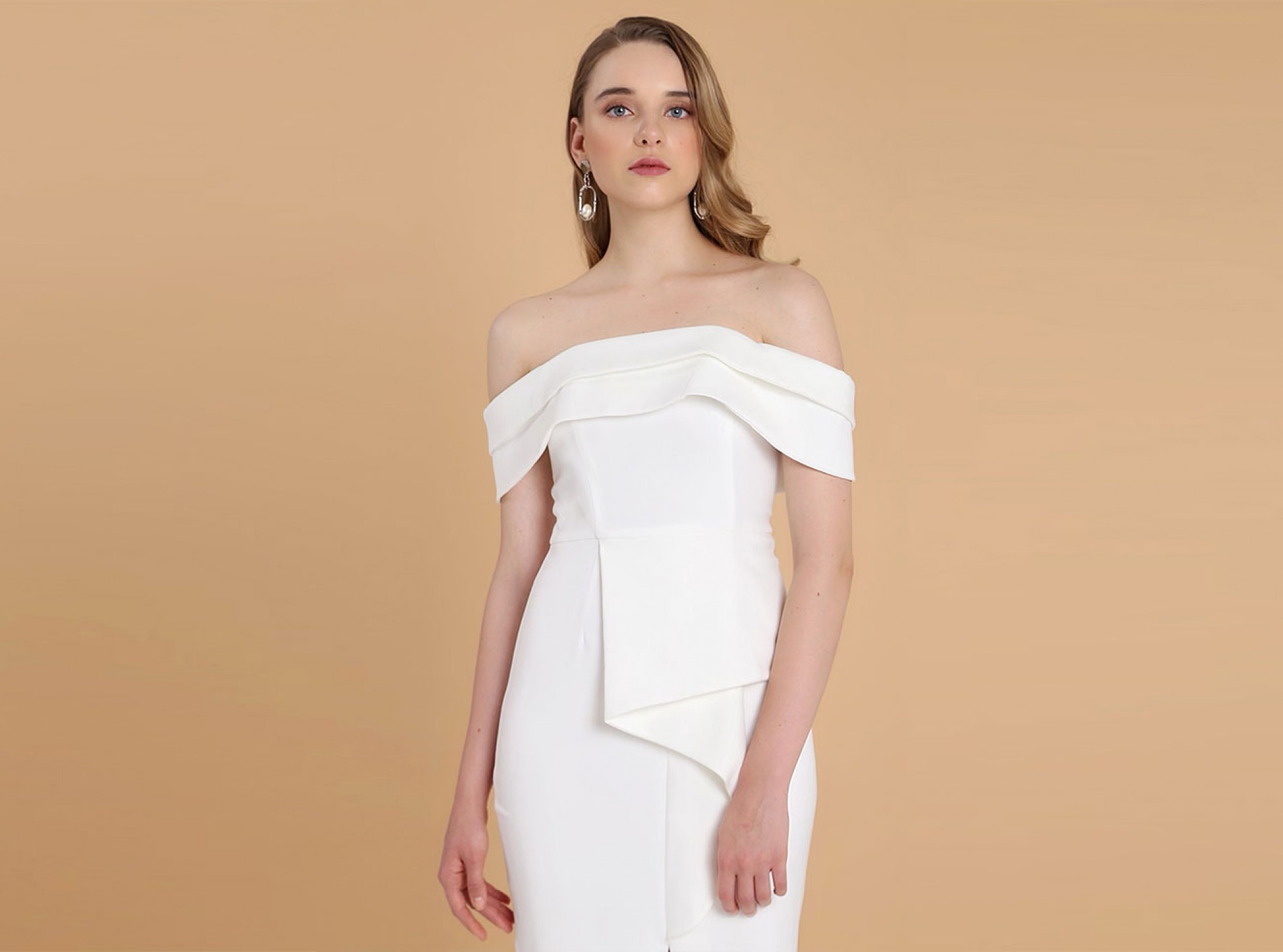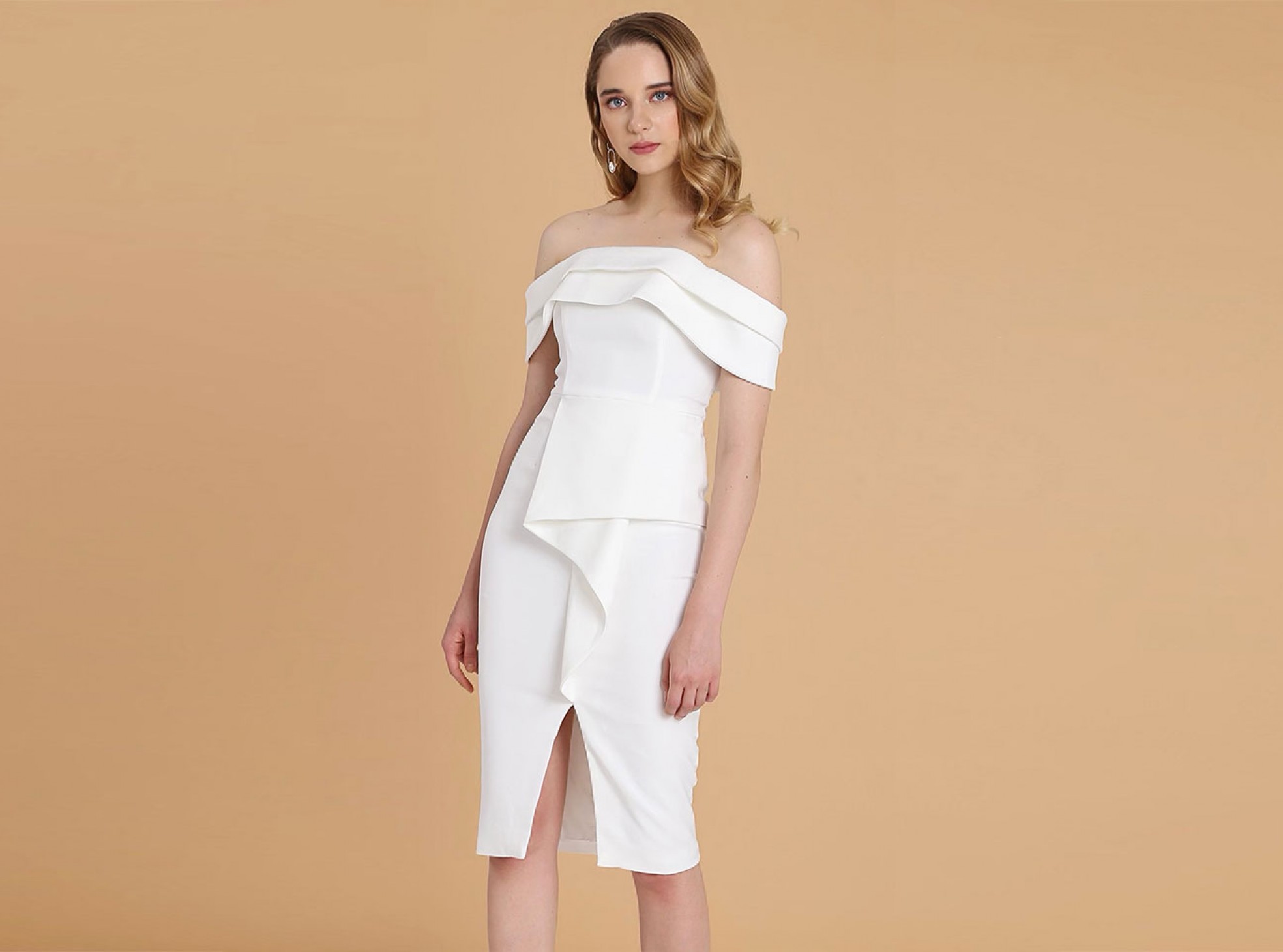 Layer it up in our Bardot midi dress in pristine white this season. The origami folded details add that contemporary edge, while the classic fit and cut hugs the body perfectly. A real occasion piece, wear it to all your up coming events.