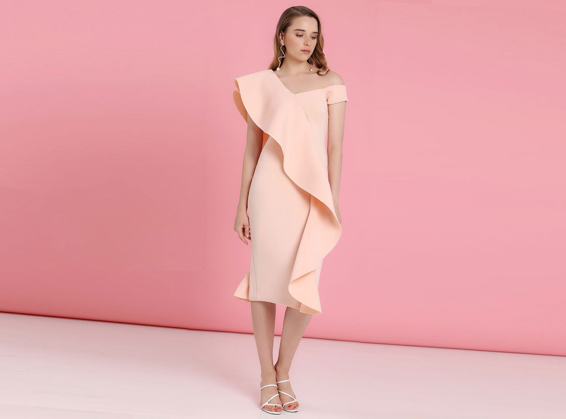With a body elongating dramatic frill, with off the shoulder detail, this sweet piece is the perfect romantic piece for celebrating love this summer. Let the body sculpting scuba do all the hard work, all you need to do is add some accessories!