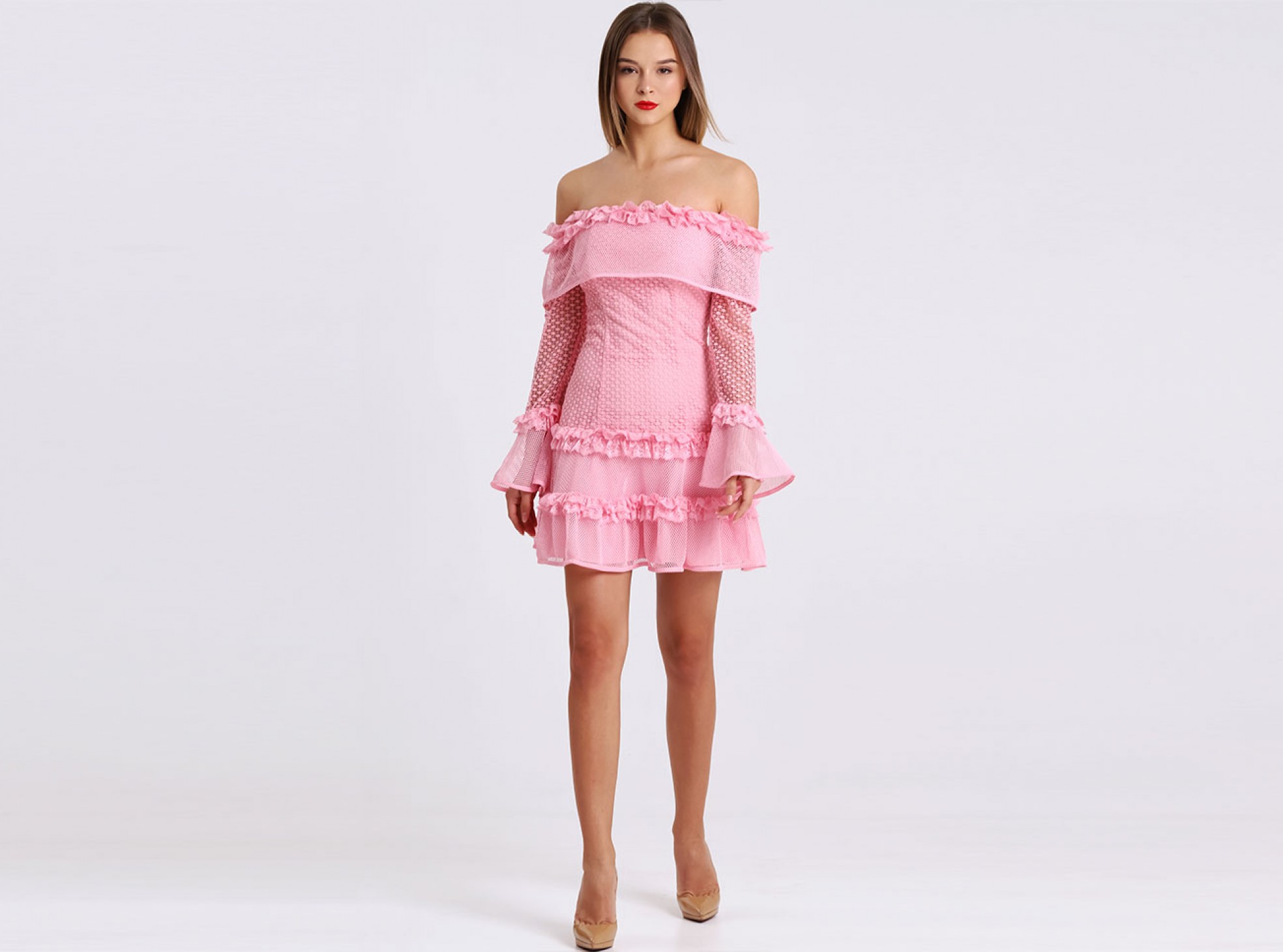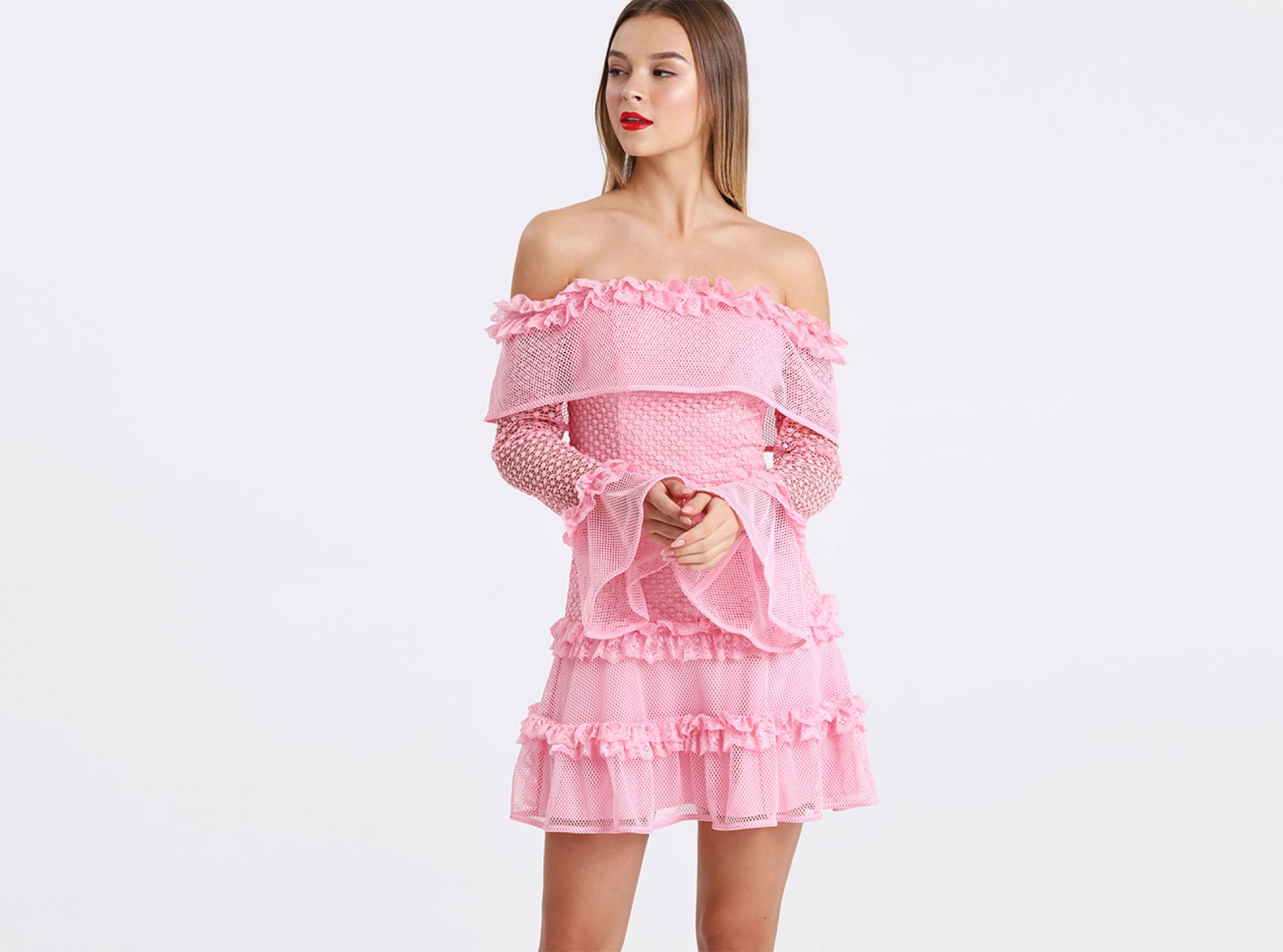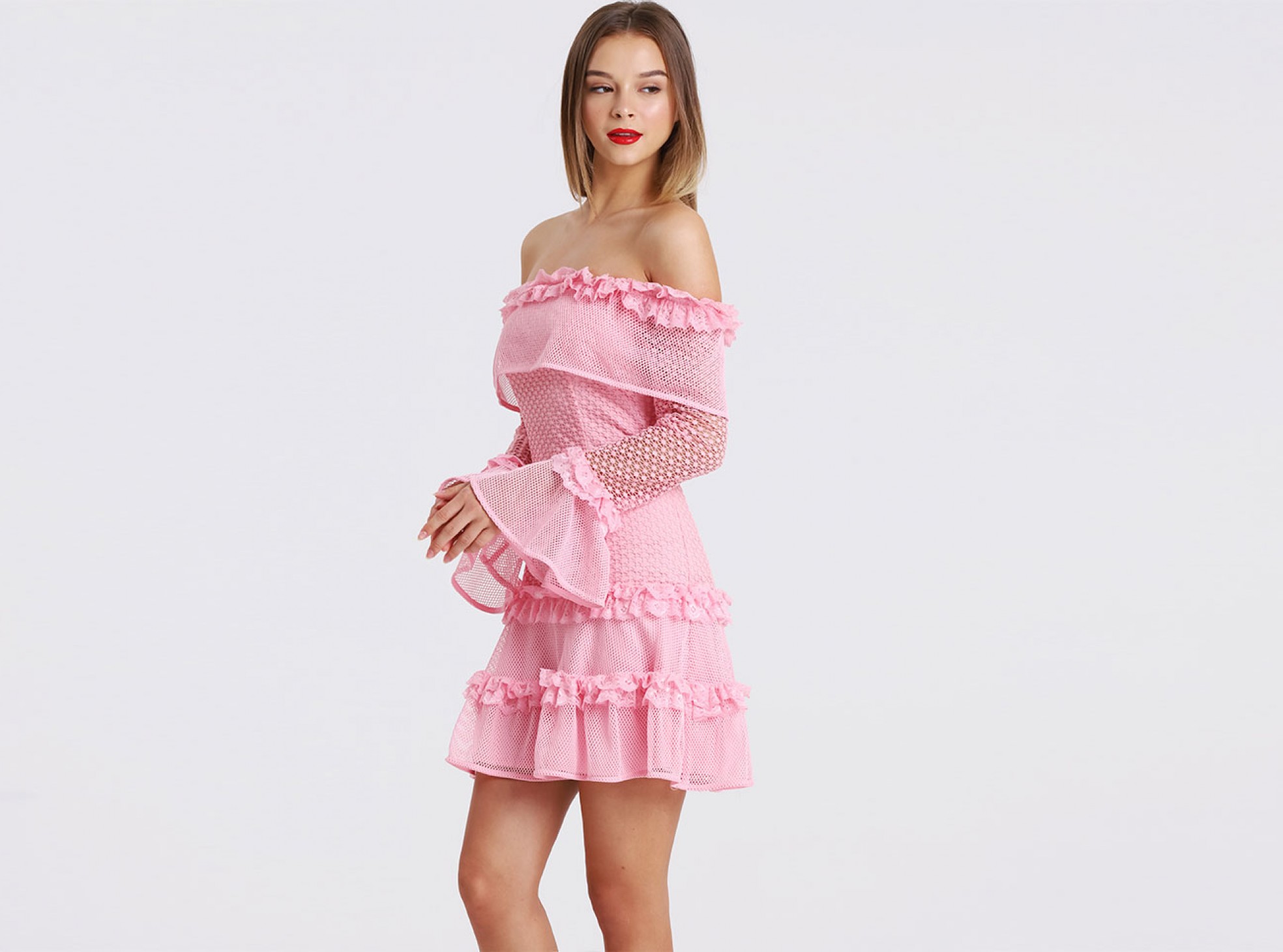The Mood Swing Dress is all about adding a chic element to your wardrobe. In a feminine shade of musk, this mini dress is fabricated from an intricate lace and features mesh ruffles with lace trimming, sheer sleeves, lining, an exposed centre back zip and an off the shoulder silhouette. The perfect little party dress to set the tone for your Summer style.