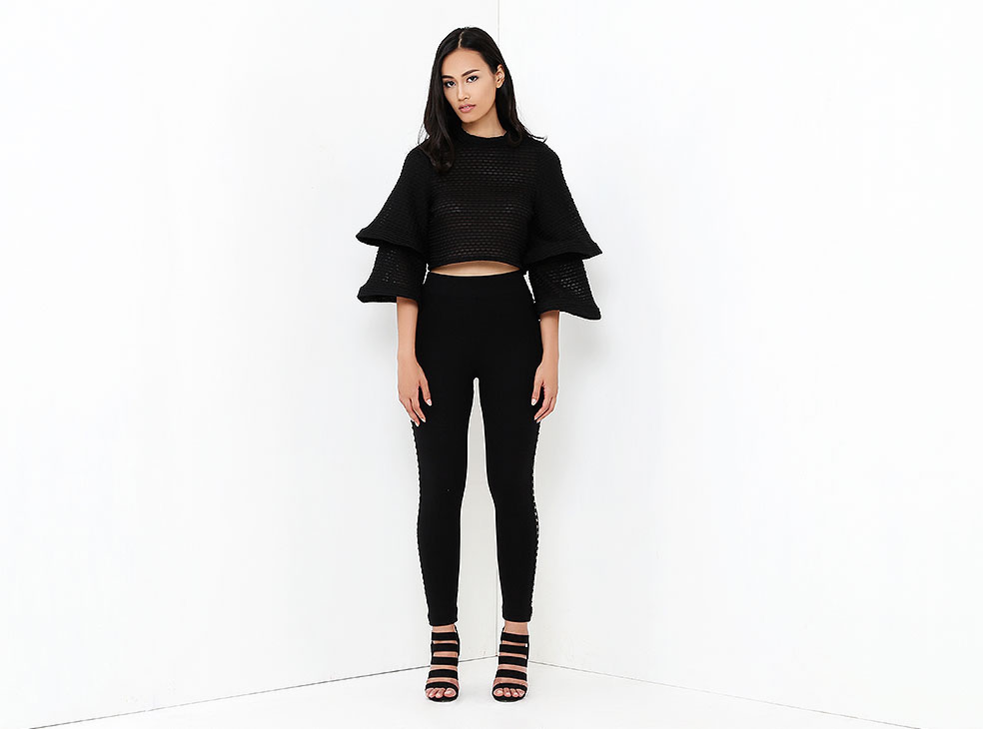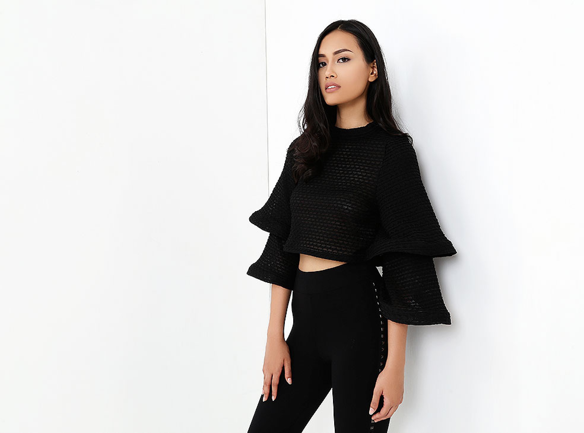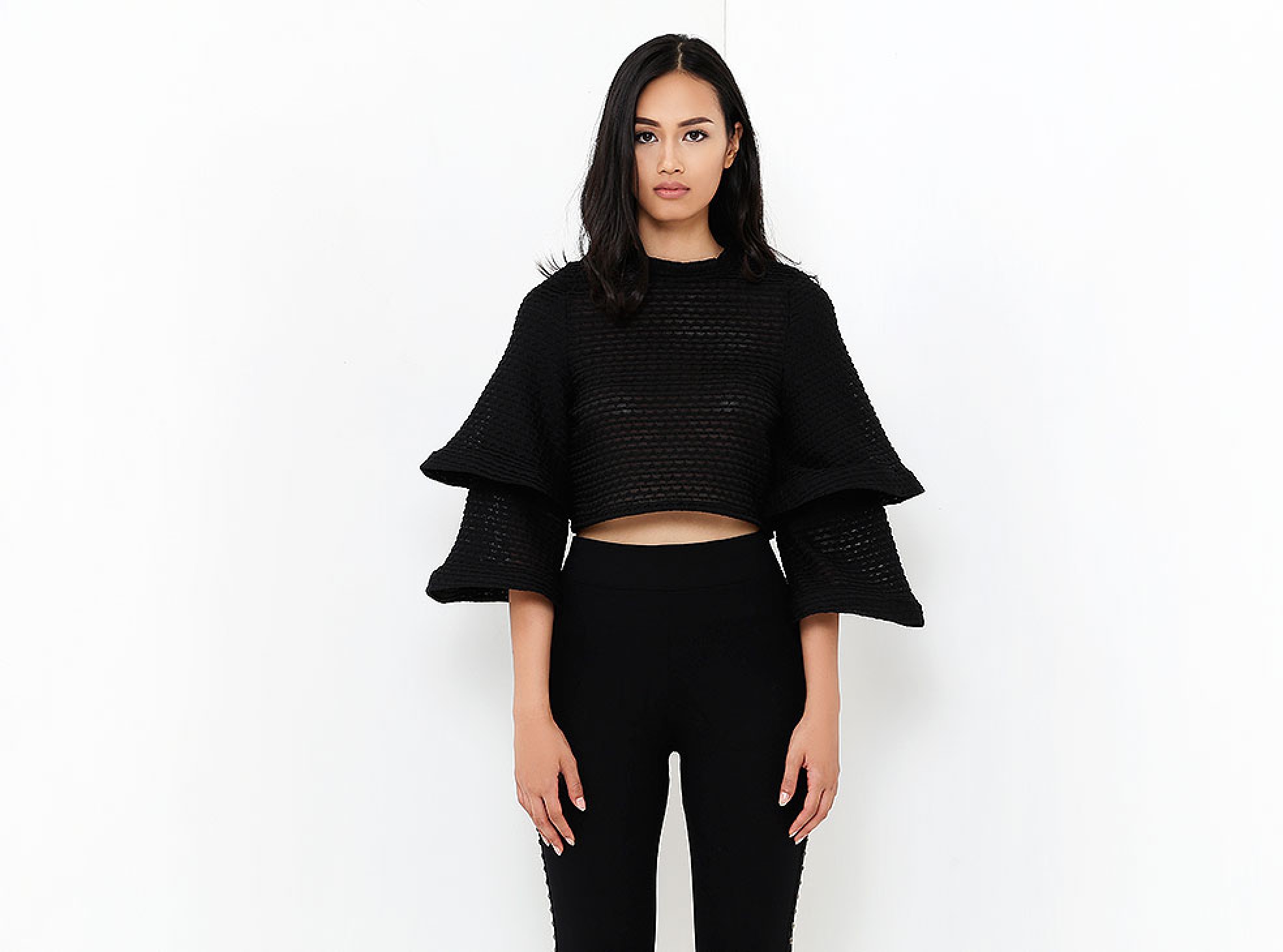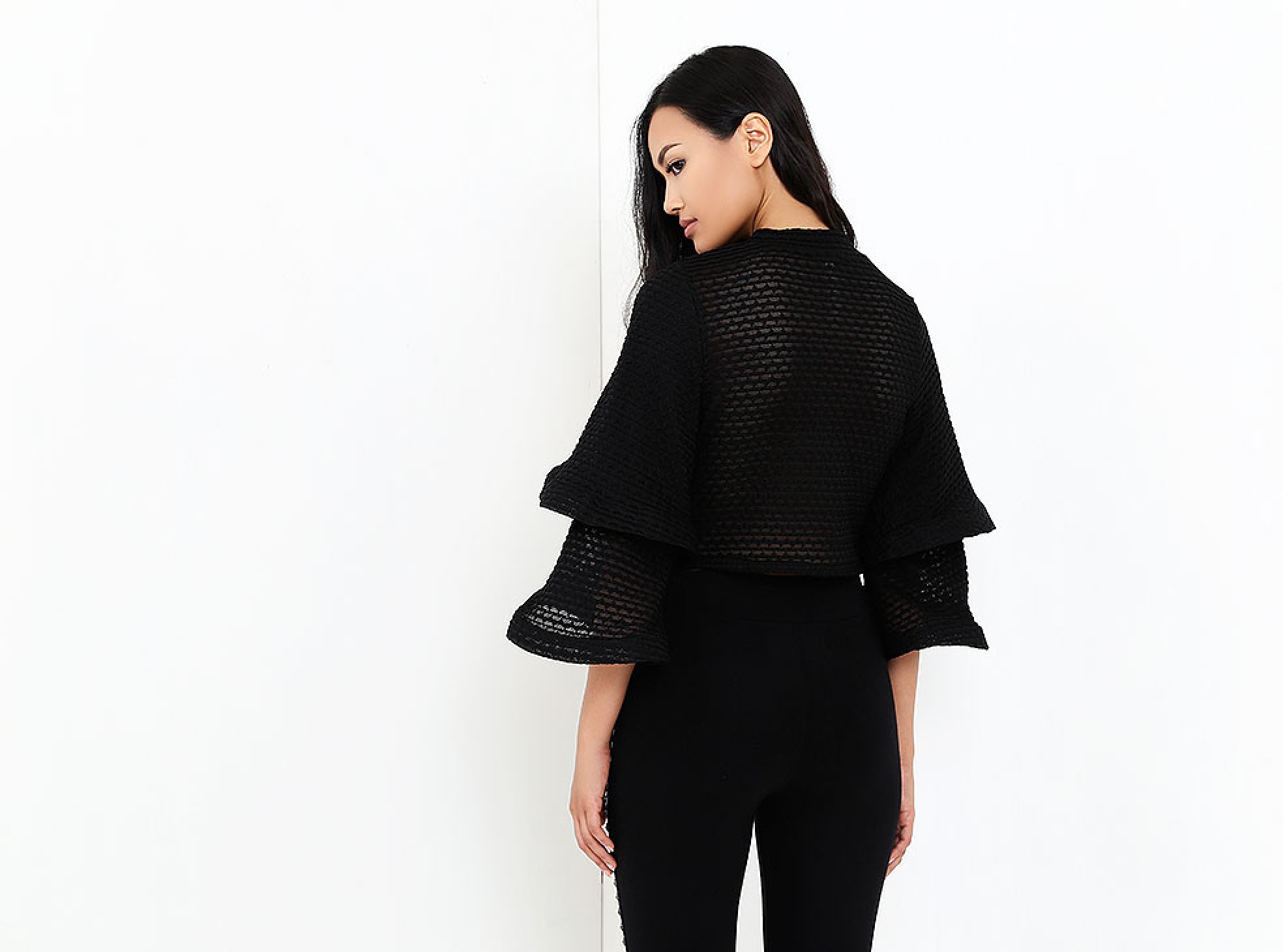 • Crop Top With Layered Flared Sleeves Cropped top that features double layered flared sleeves.