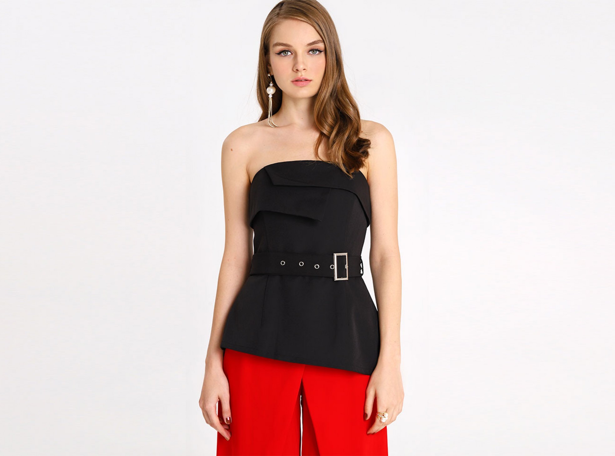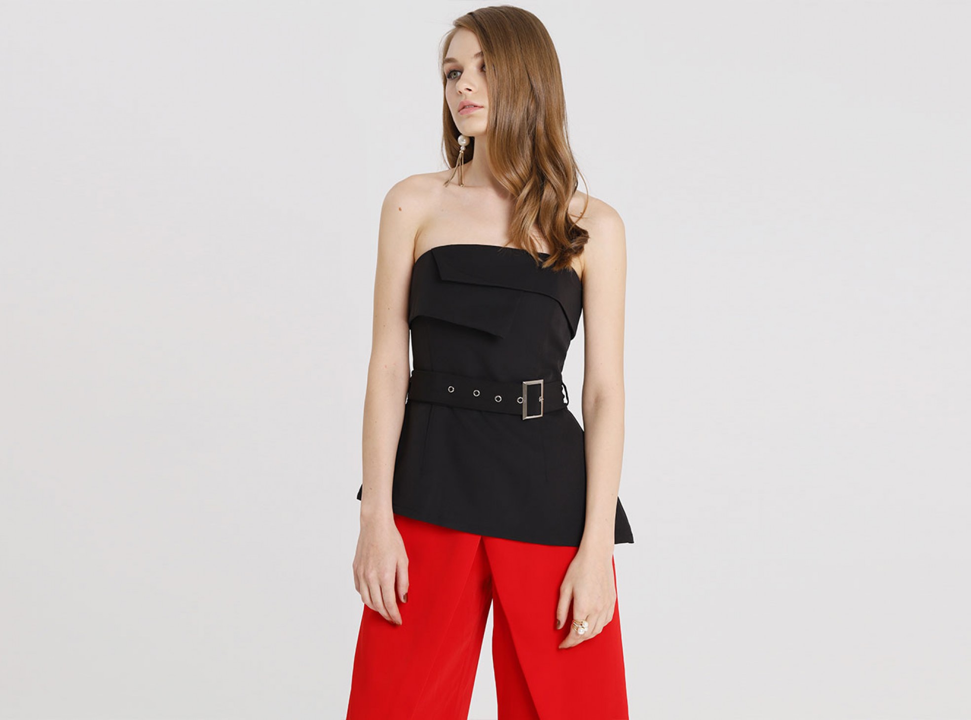 This strapless top is the perfect structured piece to a sophisticated wardrobe.