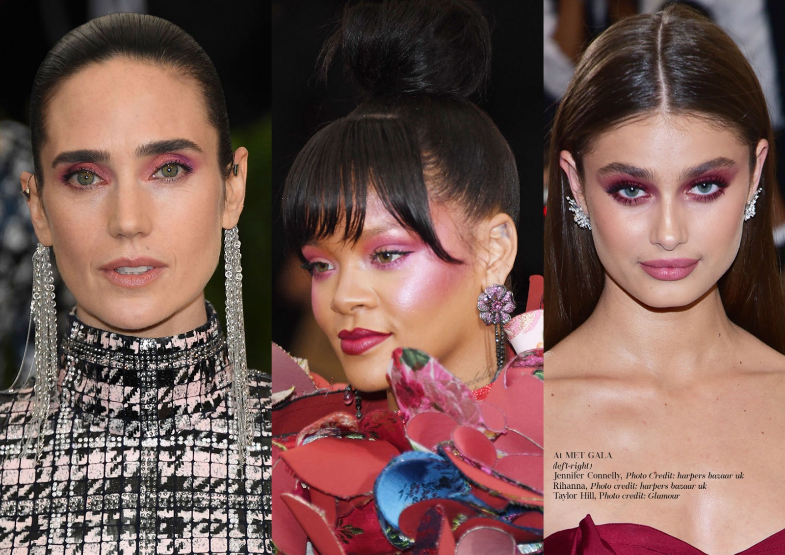 Shown at the biggest runway to the biggest fashion event, the MET Gala, pink rule. From strong pink blush on Rihanna or statement pink shadow on Selena to soft and sultry on Jennifer Connelly or natural tone on Roberto Cavalli model. Pink makeup proves the wide range of variation tone from classy, sexy, romantic, natural to fun and daring. Not only that just like red, pinks also suitable for any skin tone.